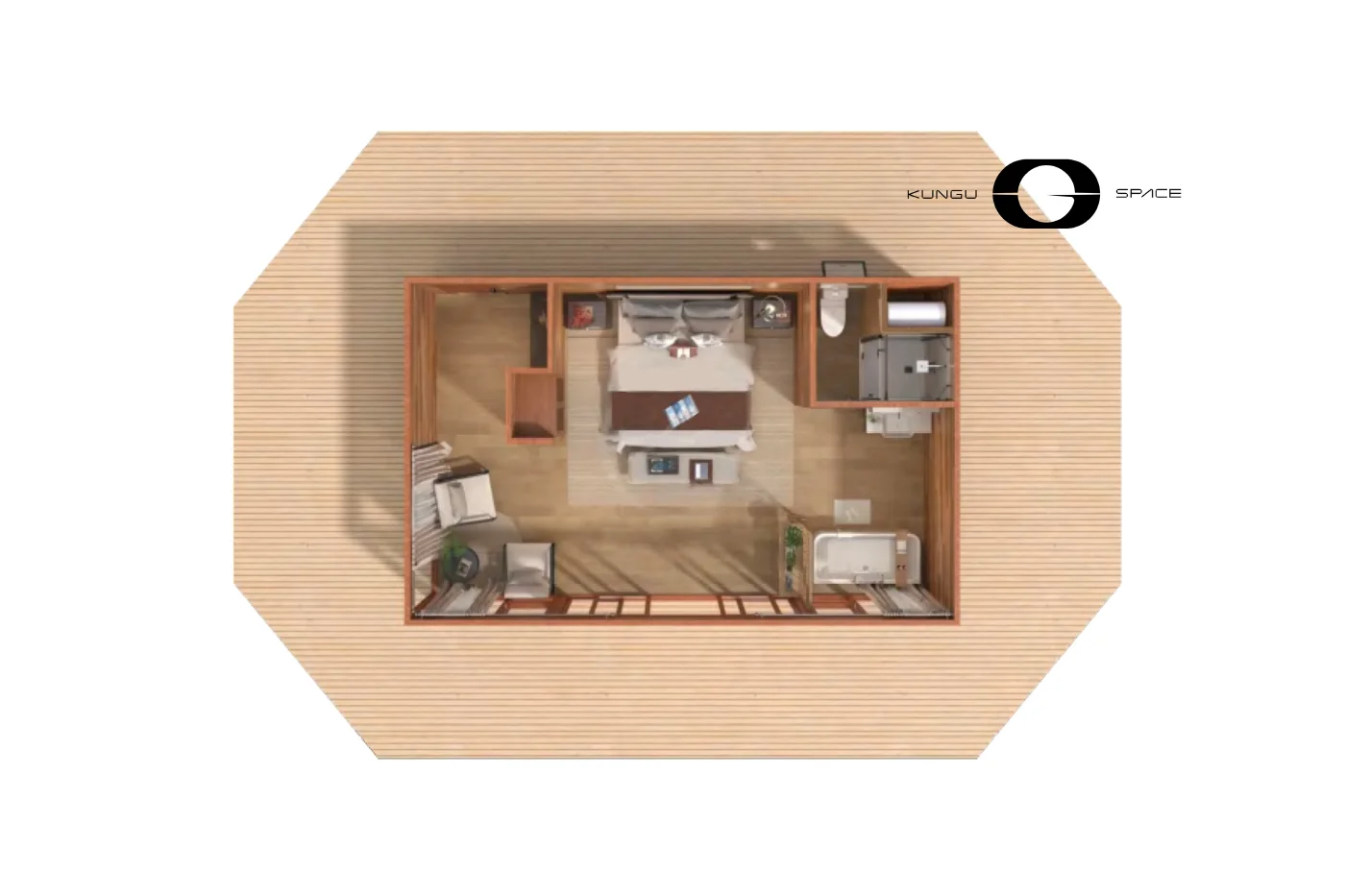 KUNGU offers various product series with different designs and sizes. Usable floor areas range from 26.7 to 35.7 square meters, with both single and double-room layouts. Customers can choose add-ons such as bathrooms, balconies, skylights, or upgrade to smart technology packages.