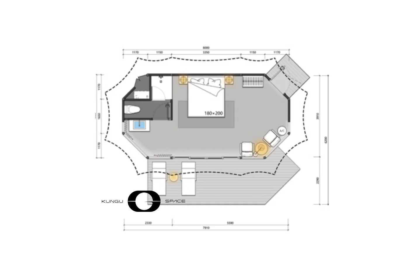 An octagonal dome design combining geometric elegance with structural stability, ideal for mountainous or scenic campsites.