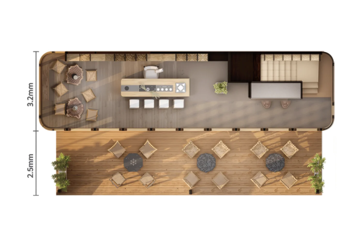 KUNGU offers various product series with different designs and sizes. Usable floor areas range from 26.7 to 35.7 square meters, with both single and double-room layouts. Customers can choose add-ons such as bathrooms, balconies, skylights, or upgrade to smart technology packages.