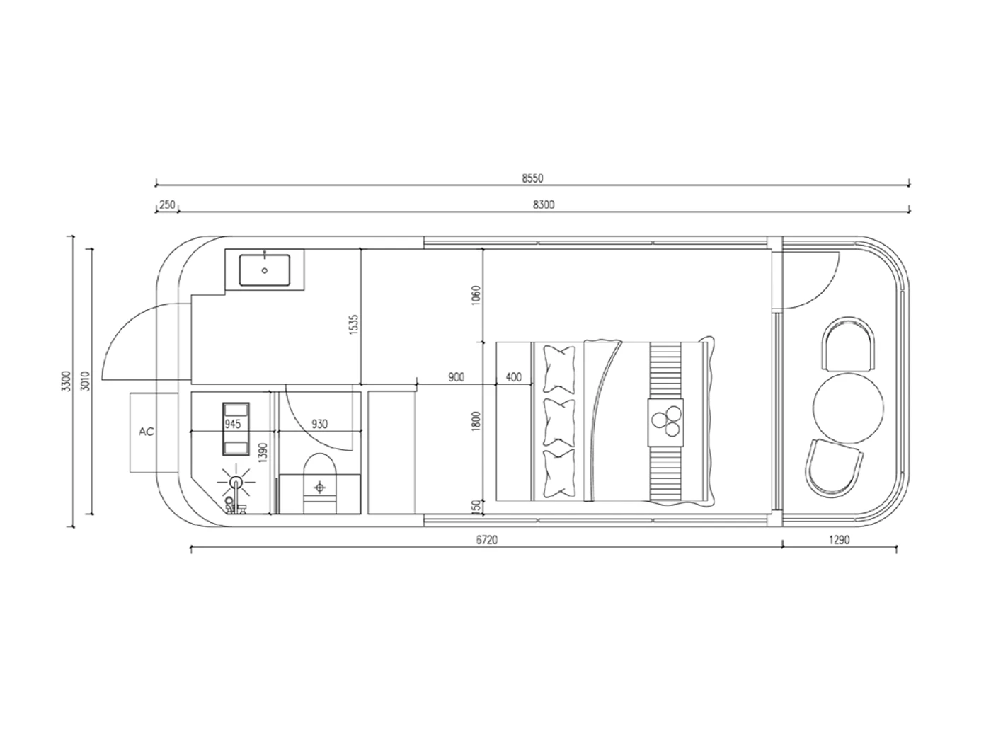 KUNGU offers various product series with different designs and sizes. Usable floor areas range from 26.7 to 35.7 square meters, with both single and double-room layouts. Customers can choose add-ons such as bathrooms, balconies, skylights, or upgrade to smart technology packages.