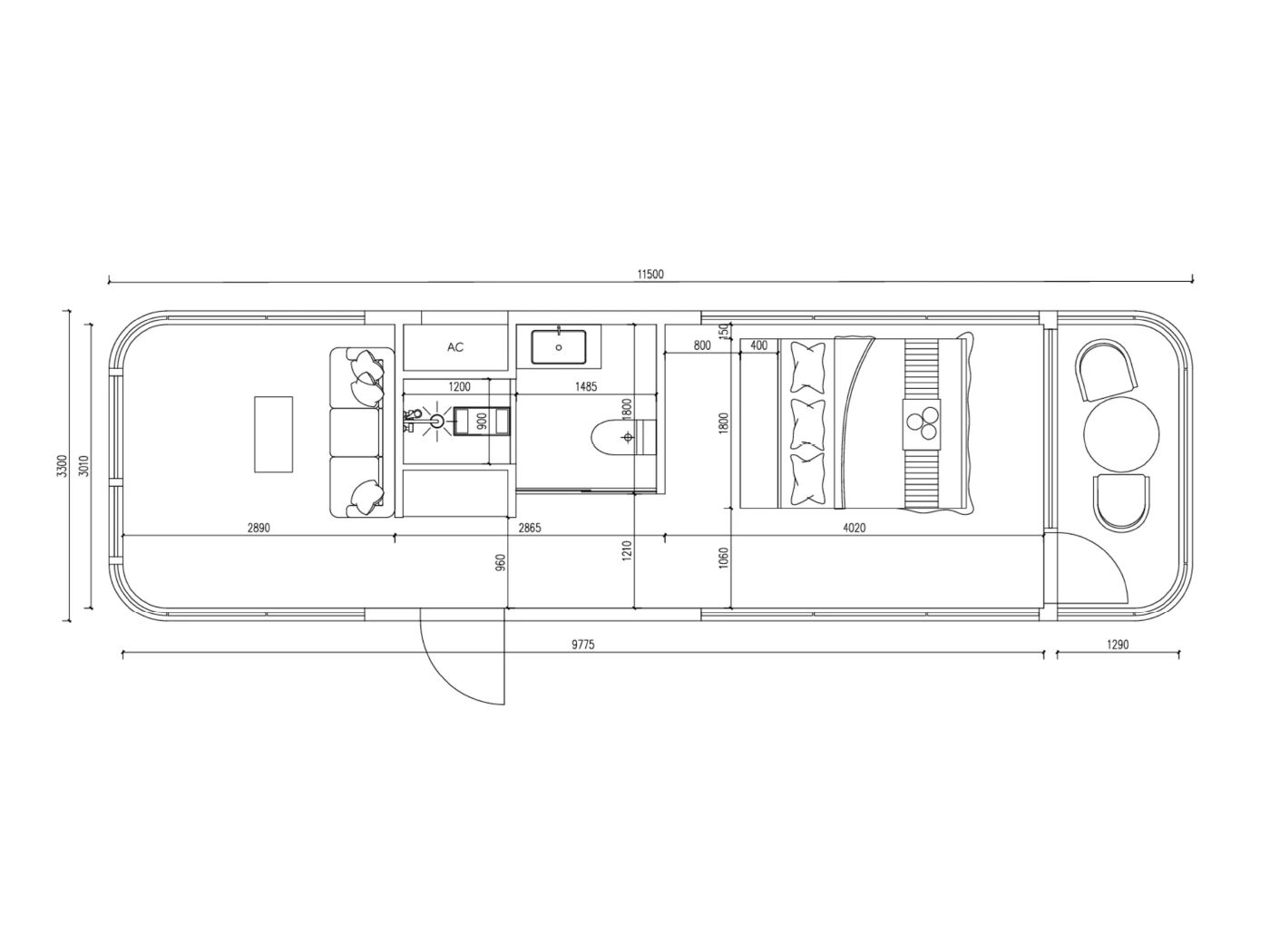 KUNGU offers various product series with different designs and sizes. Usable floor areas range from 26.7 to 35.7 square meters, with both single and double-room layouts. Customers can choose add-ons such as bathrooms, balconies, skylights, or upgrade to smart technology packages.