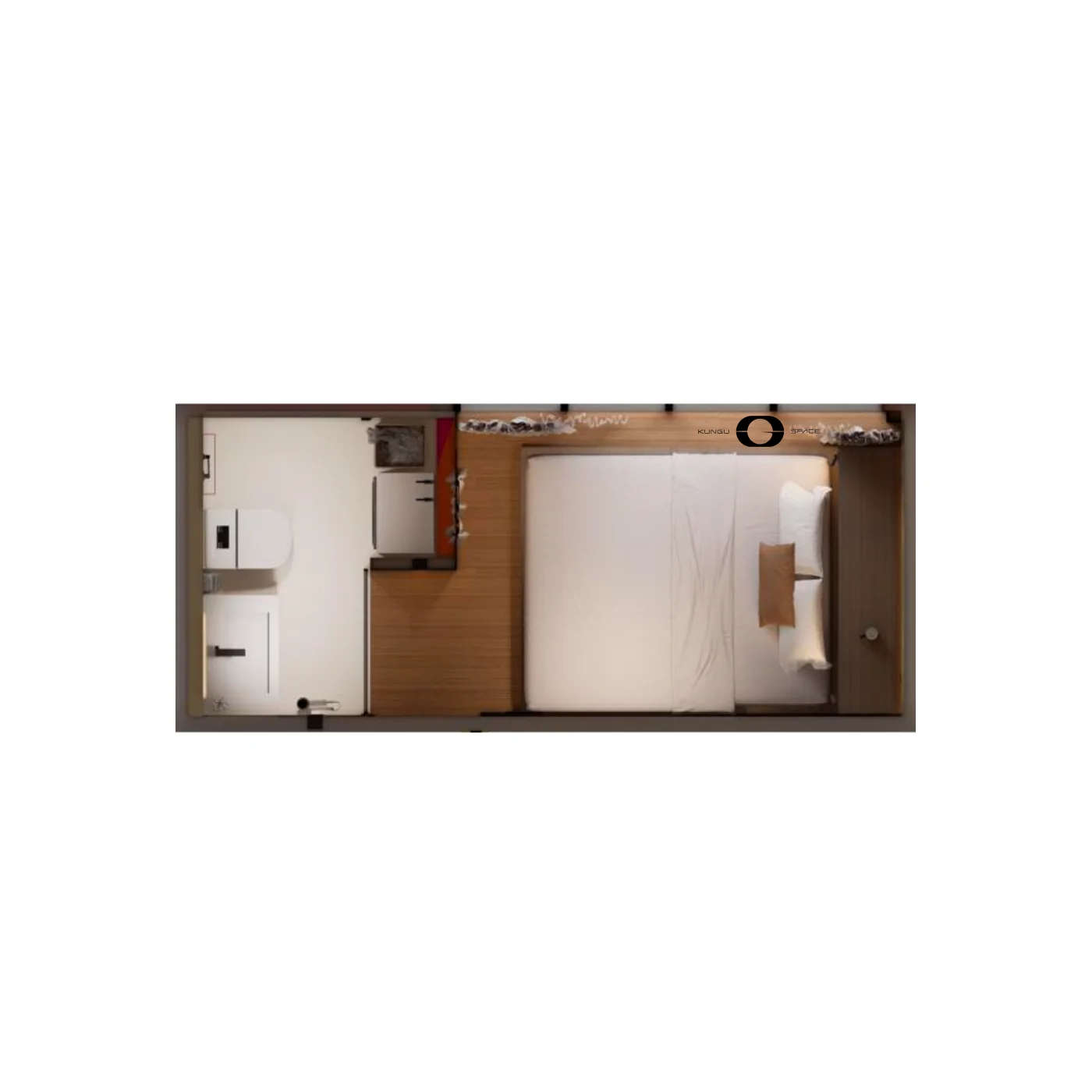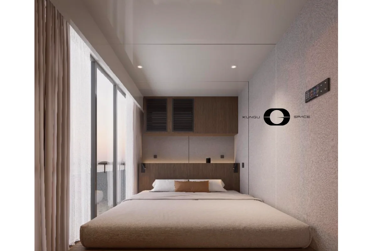 KUNGU offers various product series with different designs and sizes. Usable floor areas range from 26.7 to 35.7 square meters, with both single and double-room layouts. Customers can choose add-ons such as bathrooms, balconies, skylights, or upgrade to smart technology packages.